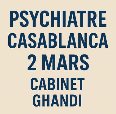 Si vous recherchez un psychiatre Casablanca 2 Mars, notre cabinet à Ghandi vous propose une expertise reconnue, des traitements personnalisés et un accompagnement sur mesure.